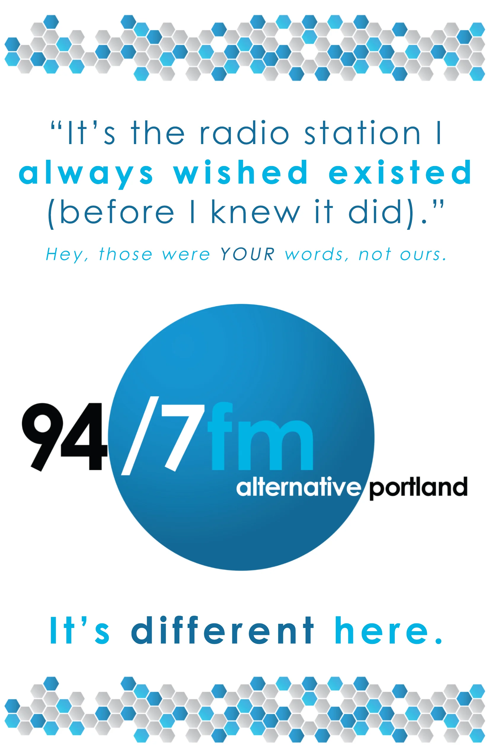I loved developing brand voice for 94/7 Alternative Portland across many platforms, including digital, e-mail, mobile, and social media.